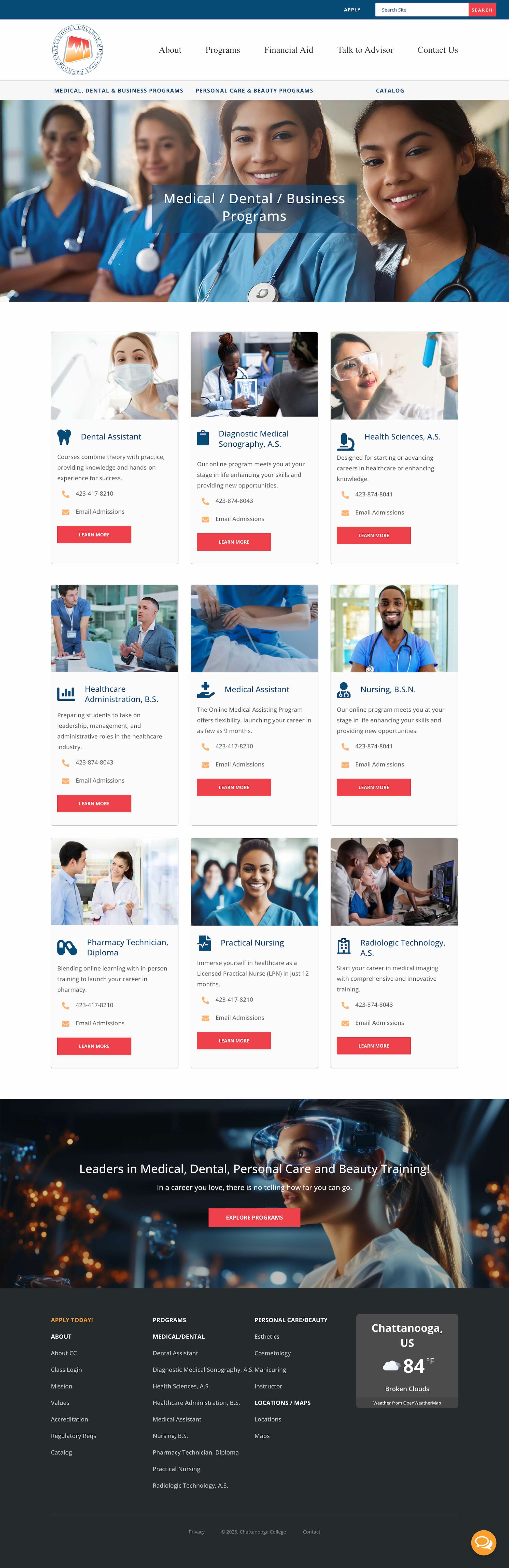 Working closely with their team, we rebuilt the site from the ground up, ensuring it not only met all compliance needs but also positioned Chattanooga College for future program expansion. Today, the site serves as both a reliable accreditation tool and a student-friendly gateway to explore programs, request information, and connect with admissions.